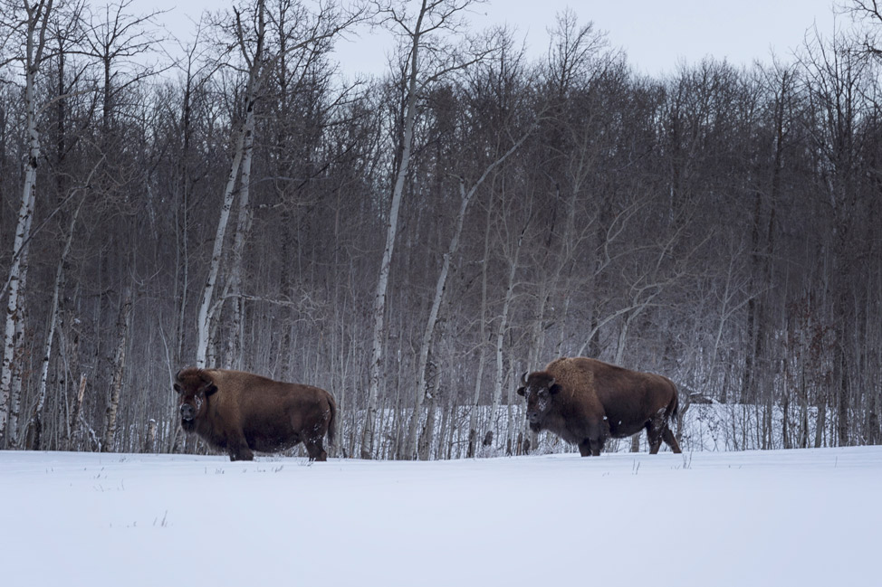 They moved quickly and quietly for creatures of such substantial girth. Their coarse hair often hung over their eyes and was laced with straw and other debris. Yet they seemed approachable, soft and fuzzy enough that I wanted to rush and embrace them. But I obeyed and kept my distance. These are, despite the fence that binds them in Elk Island National Park, entirely wild creatures.