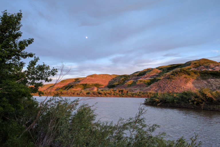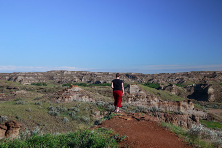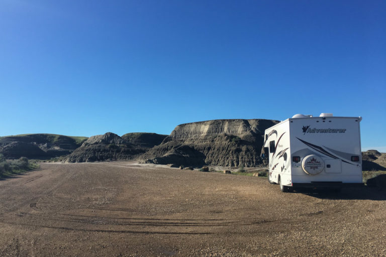 Not to be confused with the area surrounding Drumheller, Dinosaur Provincial Park is actually over two hours south. This was the only place we stayed more than one night, and we were sure glad we did. While a busy campsite, the setting just can’t be beat, right in the deep layered groove of the Canadian Badlands with ample walking trails and all kinds of historic information along the way.