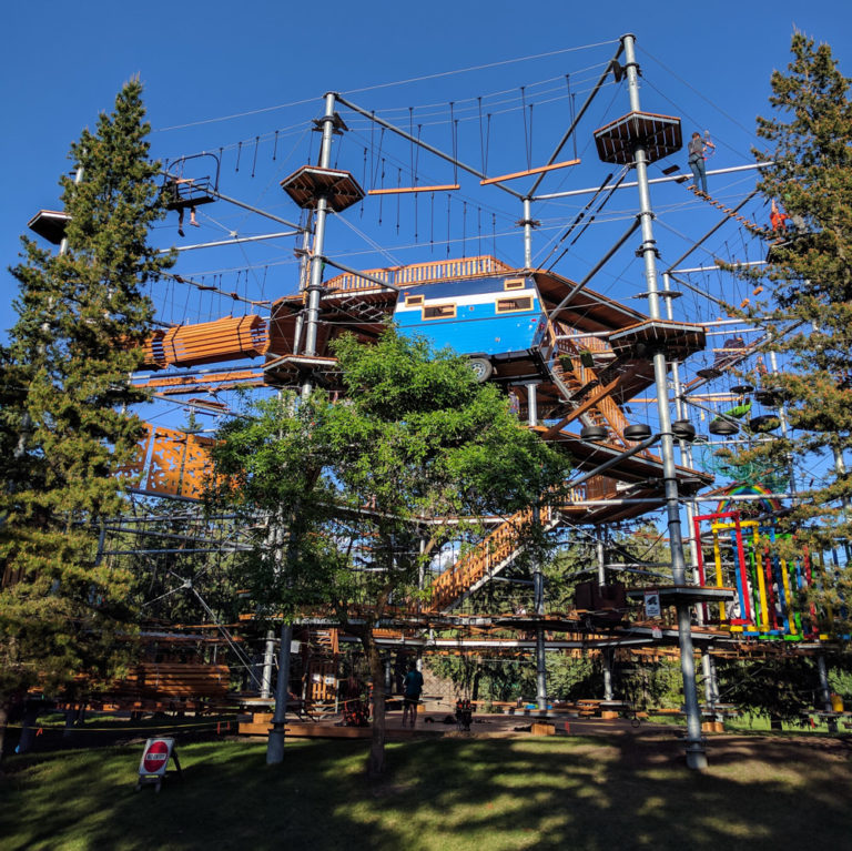 By the time we picked up the RV nearby on day one, stocked it, drove through Edmonton for the required “world’s largest” sighting, we were ready to call it a day. The Rainbow Valley Campground in the south is a spacious site considering it is well within city limits. It also is ideal for families (or kids posing as adults), with a large aerial park recently opened within.