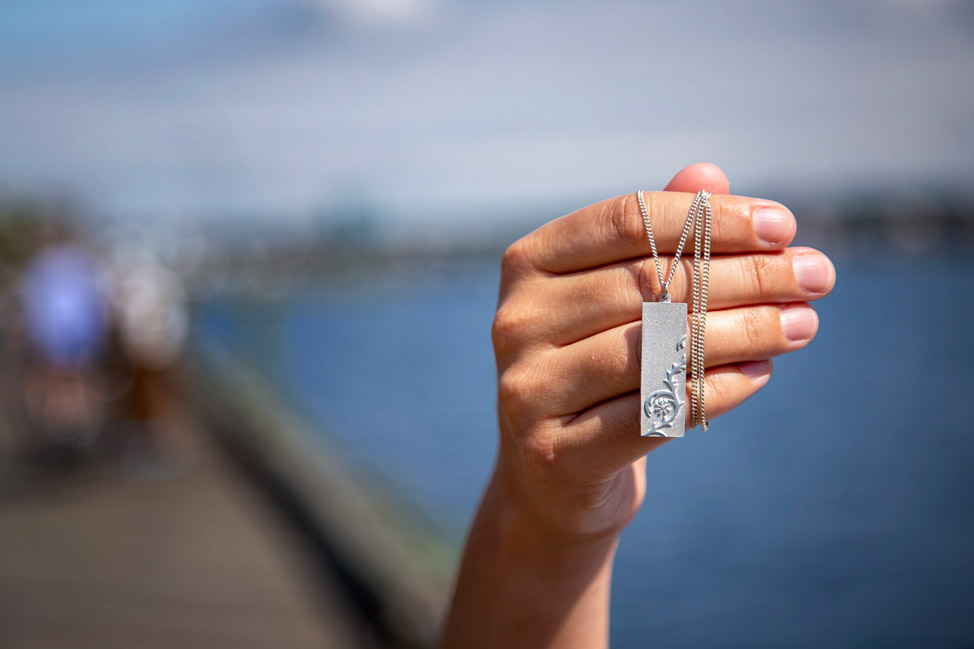 We met Sébastian McSween, the Creative Lead with Amos Pewter, an artisan shop located in nearby Mahone Bay. He worked as a deckhand in the early 2000s aboard the Bluenose II and brought that experience to life in another way, by designing a commemorative piece for the centennial. Rather than simply replicating the schooner’s likeness in pewter, he wanted to incorporate something special into a pendant. On the front: An illustration of the ship’s scroll from the vantage point of the deck. On the back: An imprint of the original winning sails that now sit in a museum. With the sails forbidden to be touched (in order to preserve the fabric), the museum did high res scans of the cloth and turned it into a 3D landscape to make the mold. They specifically included a part with a seam to add more texture.
