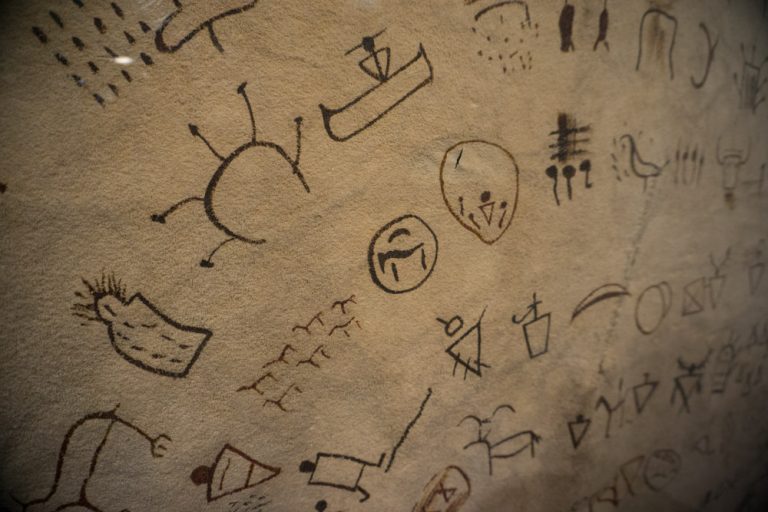The symbols painted on this “winter count robe” tell a story of important yearly events.