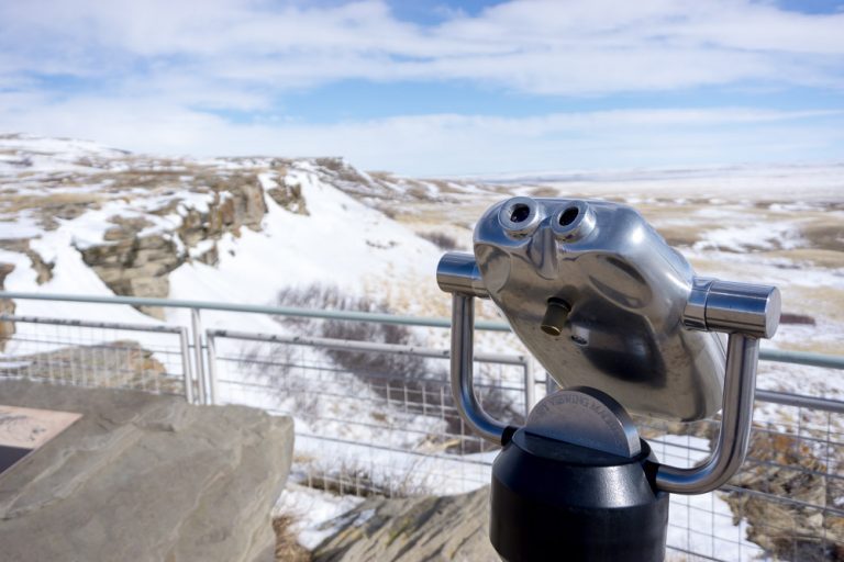 “The Creator is here, day in and day out,” Quinton said. “Take away the interpretive centre and it is still a sacred site.” We were standing on Treaty 7 land within the Piikani community and a part of the Blackfoot Confederacy. A few steps from the interpretive center and we were on the edge of a cliff, staring over the edge at a historic kill site.