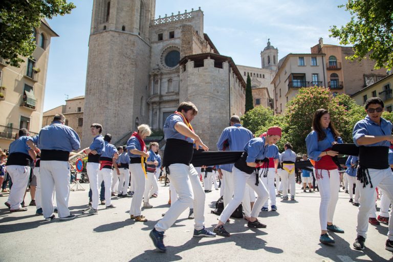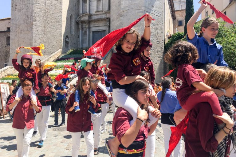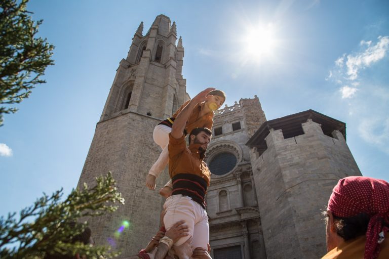 In Girona during an event for the Fires de San Narcís (November 1st of each year, celebrating Girona’s patron saint), you can catch the human towers actually climbing the steps of the cathedral.