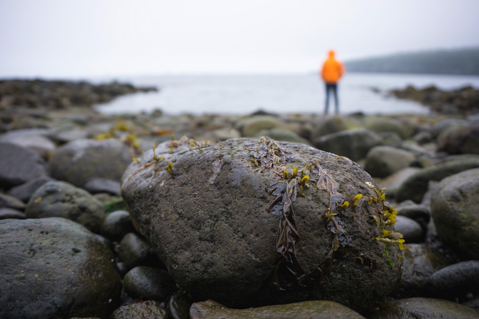 Oh yeah, we’re on an island. Tucked into a cozy cabin by the coast. The previous night, we had read by a fire and went to bed with the sound of gentle waves rushing the pebbled shore. On this day, we would poke around the coastline a bit but were chased back inside by the fog and rain. Hey, we didn’t mind too much.