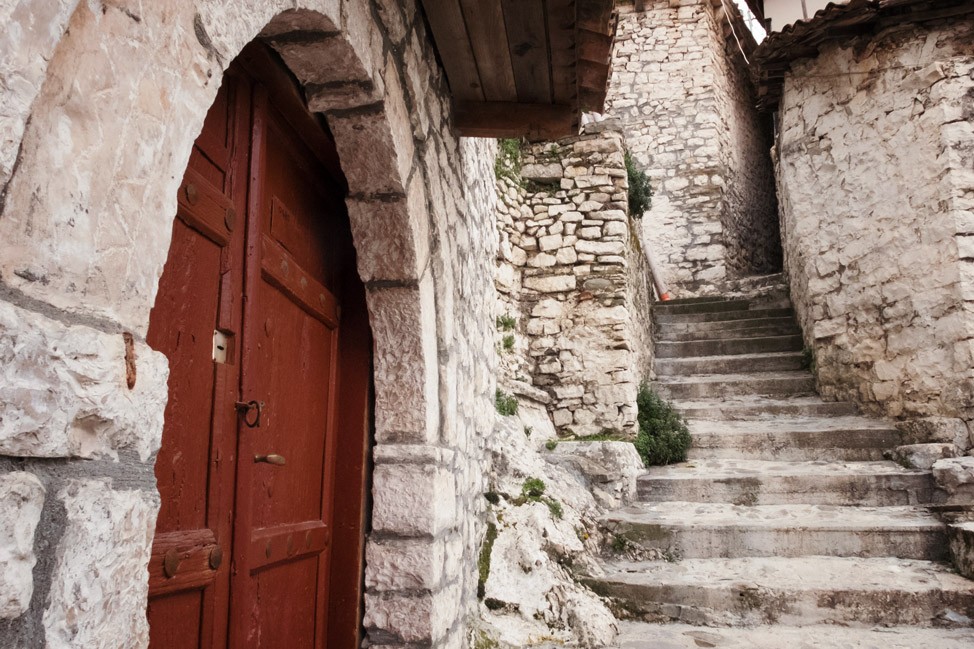 Berat is a tiny city, but one that we enjoyed walking many times over, up onto the cramped cobbles between hillside homes, navigating the slick mossy steps and stopping for photos of the odd bright door amidst the repeated walls of off-white. On one outing I got caught up in a complex conversation of hand gestures with an elderly woman peddling various jellies and pomegranate wine, and she expertly succeeded in getting me to pay far too much for a recycled soda bottle of the latter. (I have developed a distressing indifference to adorable children selling their wares – knowing that making a purchase does more harm than good – but I can never resist a cute grandma.)