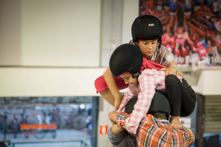 “My whole family is involved,” Ona told us. At 22 years old, she had been a part of a castell team for 10 years. Her parents balked at letting her join but she would not relent until they did. Later her entire family became members of the local group in the small city of Olot. “It takes up a lot of time so it is good to do it together,” she said. Ona is now on her own, attending university in Girona, but sought out a team as soon as she arrived.