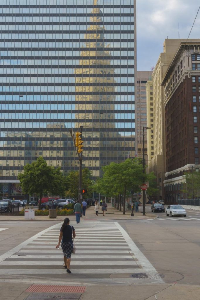 A few shards of broken glass were scattered on the narrow platform at the top. We circled it to check angles for light and view, snapped a dozen photos, and then just stood soaking in the busy street scenes below, staying much longer than we ever intended.