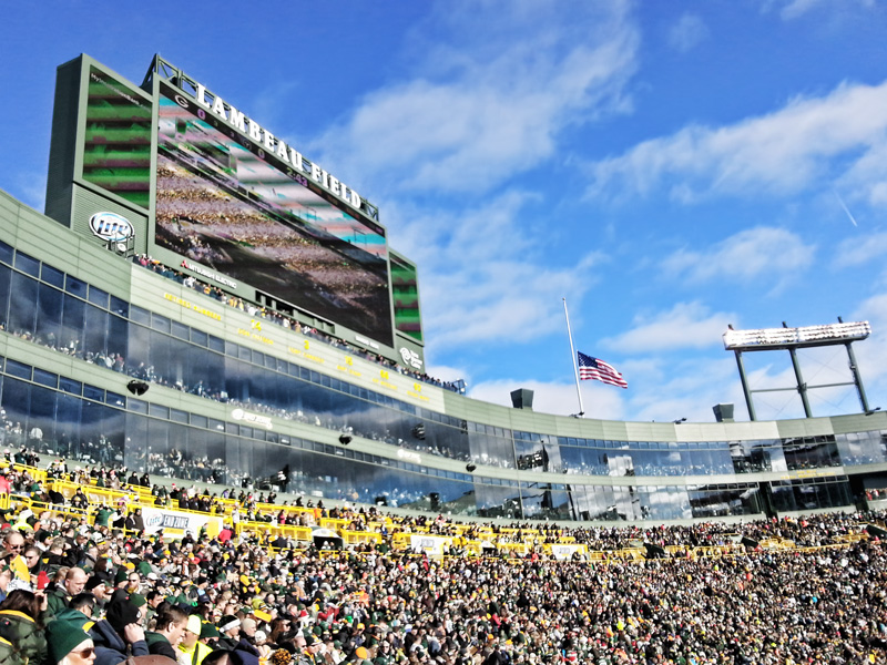 When I was a kid I regularly watched the Packers on TV. I don’t know what drew me to follow them. My family understandably never watched NFL, being from a diehard CFL nation. I’ve remotely cheered the Packers to win two Superbowls (1996 and 2010). I’ve seen countless Lambeau leaps, the crazy body painted fans braving the sub zero temperatures and the great Packer players throughout the years. But to see them in person was a little childhood dream come true.