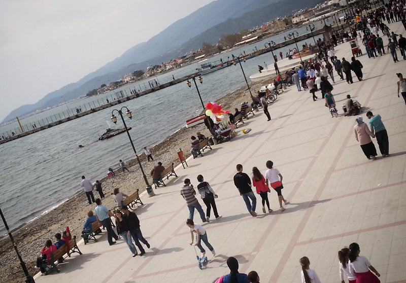 During our twenty-four hours there, we saw nothing in particular but enjoyed everything. We started our day by wandering the boardwalk. We stopped for a çay, walked a bit, declared it noon somewhere, stopped for a beer. Walked a little further and stopped for lunch. Dawdled some more and then needed ice cream. Found Konak Square and spent an hour lounging in the shade, people and pigeon watching to our heart’s content.
