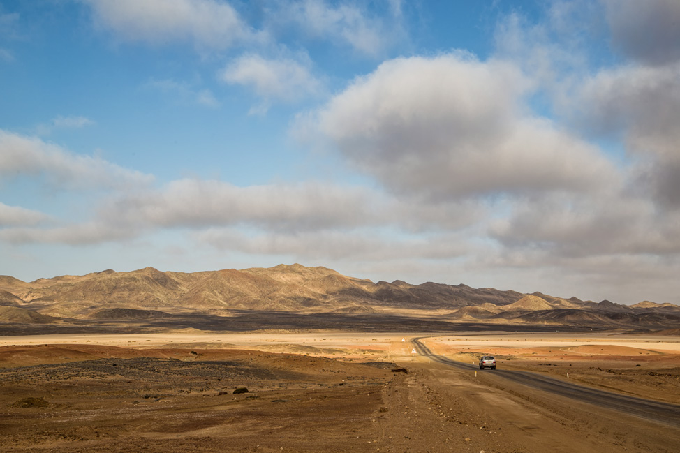 The tarmac quickly gave way to gravel, sand, and even salt-paved roads (consisting of concentrated salt water and hard packed gypsum-rich material) that changed colour with the land. Blonde to rose to black to pumpkin and sometimes streaks of every colour at once.