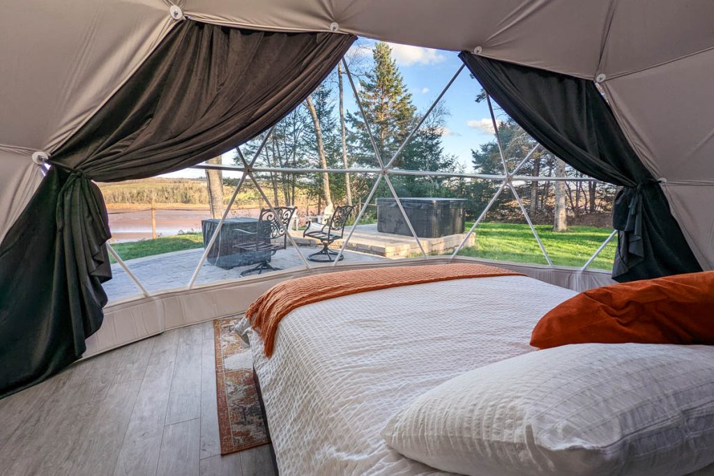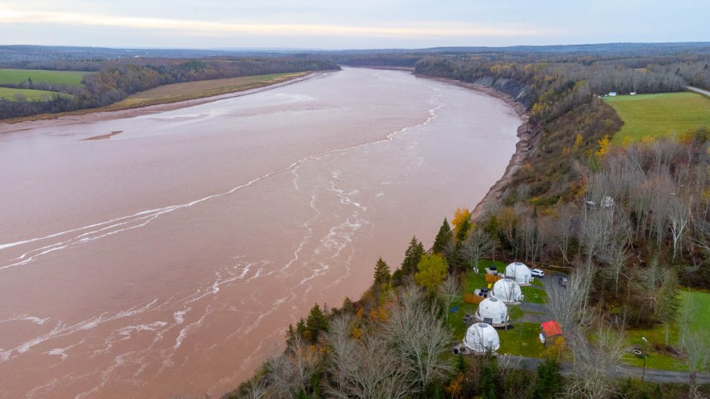 Make it more than just a day trip by booking a night at the Gravity Luxury Domes. This is glamping at its best, and not only is it a supremely comfortable stay (complete with an outdoor hot tub, kitchenette, and more), but you will be front and centre of all the changes that come with the dramatic tide swings of the Bay of Fundy that rush up the Shubenacadie River, right outside your door.