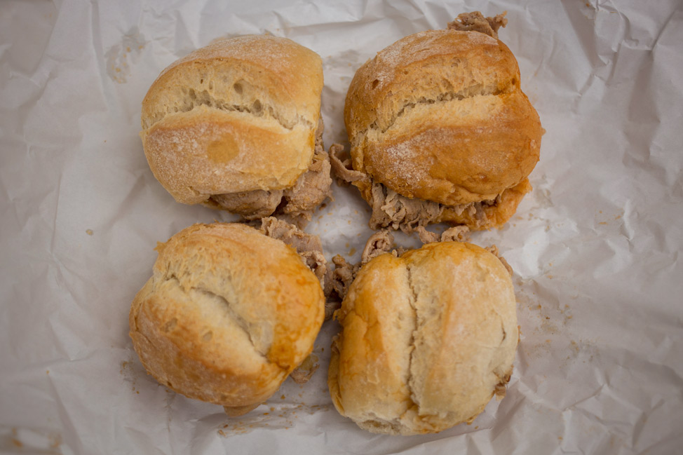 Dona Maria Pregaria shall henceforth be known as the producer of all the guttural moans (the photo of two sandwiches near the top is the culprit). Order its namesake (the Dona Maria sandwich) to experience all of the goodness. It’s marinated medium-rare grilled steak served on a soft bun topped with aioli and melted cheese. Pete would try a couple of others, but none would compare.