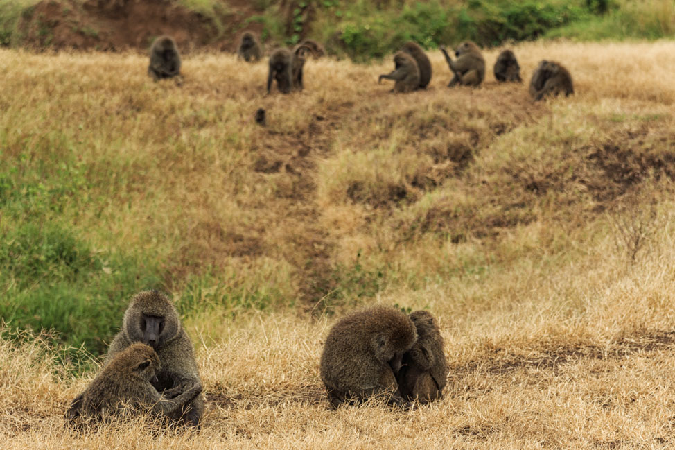 After many miles of easy cruising, we were surprised over a small rise in the road by six or eight small baboons on either edge.