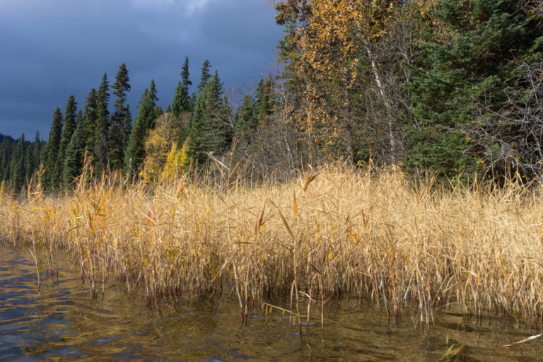 It was reed canary grass. Some consider it invasive, it can be toxic to animals, and it would never have caught my eye had Dave not honed in on it. In his 20 years of paddling the Bowron, Dave had never seen it anywhere else in the park except for this one unique spot. It grows to seven feet tall and is used by some farmers as a rich agricultural grass on very wet soils, hence its new home on the flood line of the lake. As we glided past it on the canoe, an up-close review confirmed Dave’s suspicion of its being. From there, we gradually pointed back on course. My gaze returned from the water level to the soaring peaks around me, but smiling from this timely lesson on perspective that our guides Dave, his wife Cheryl, and their friend Stan, repeatedly taught us on this trip.