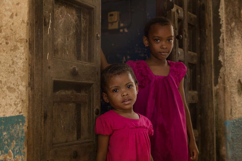 A motorbike whipped past and almost knocked us over. By that point, we truly had no idea where we were.We were caught up in details of the historic city. This once bustling trading centre, originally under the control of Oman, has a number of visible influences throughout the old part of the city. Its name comes from the fact that buildings in the old quarter are made from coral taken from the sea. The result is that over 75% of the buildings are in a state of deterioration, with much rubble remaining exactly where it fell. We saw bits and pieces of coral being used as goal posts on an impromptu football pitch in a courtyard.